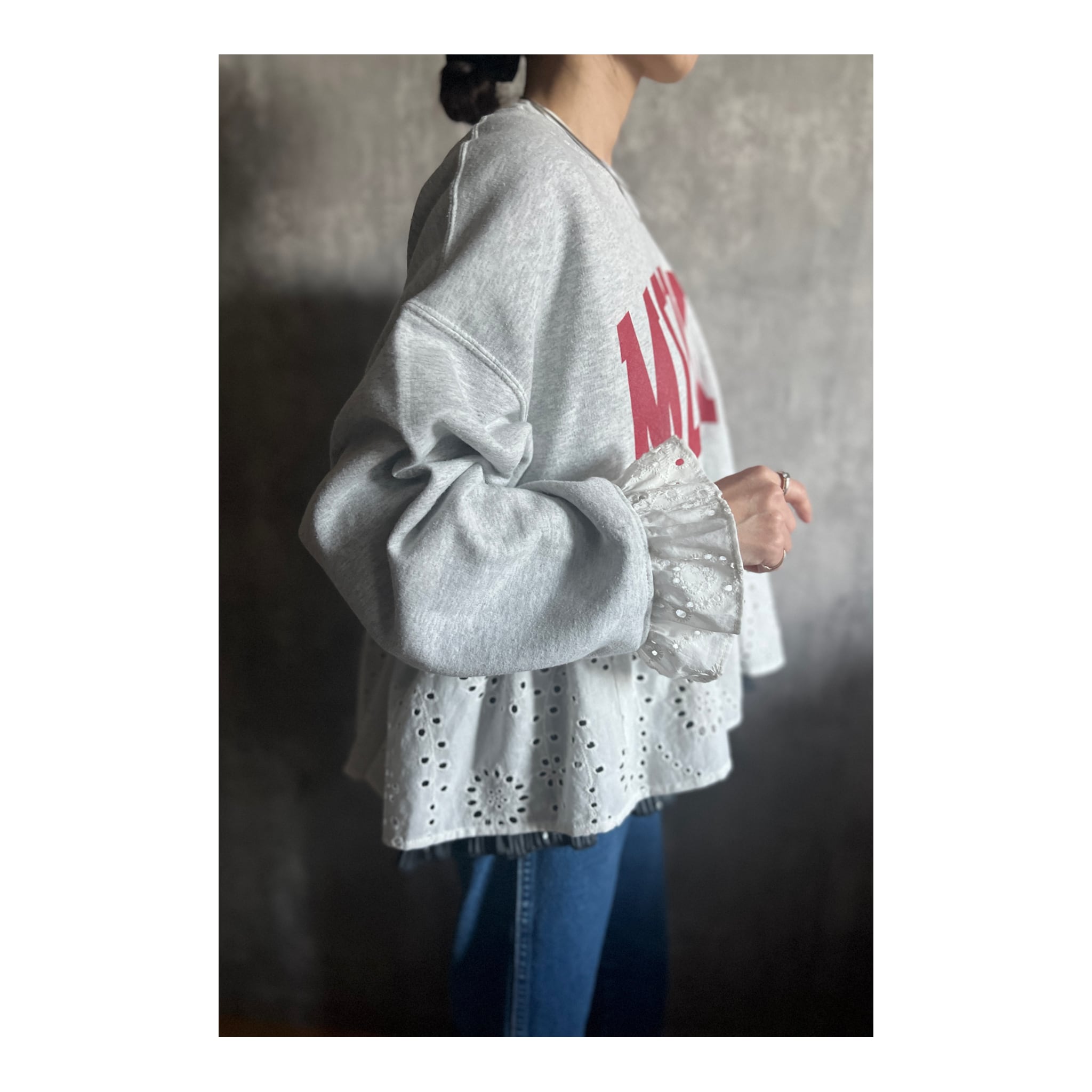"ReMEL" cotton lace frill sweat